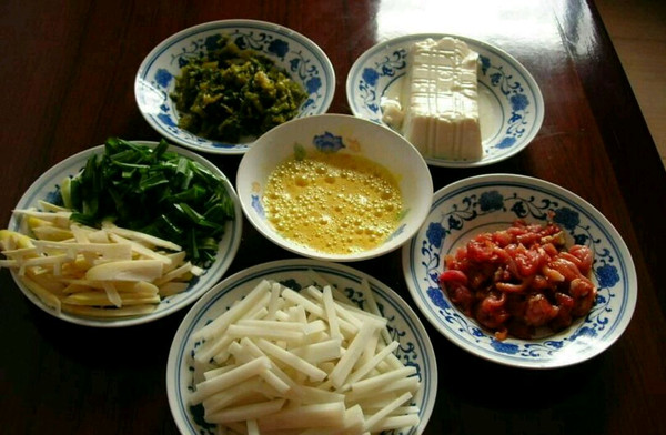 准备好食材,切丝。(图是网上找的,因为今天做忘记拍照了~但是差不多就这些)根据自己的需要放量。照片上的可以两三个人吃了!
