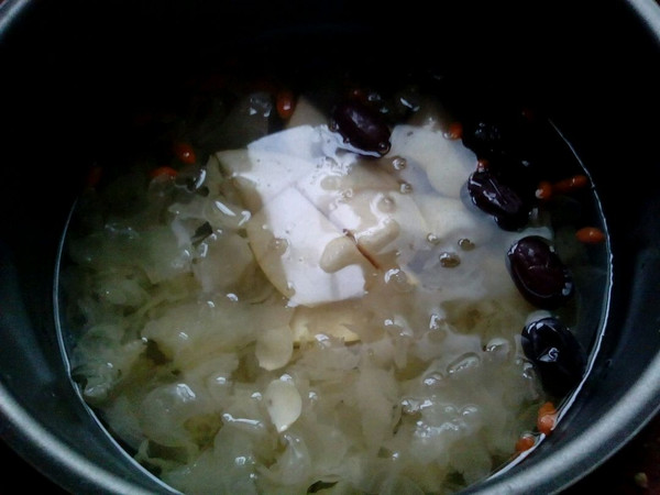 泡好的银耳用手撕成小朵,加足够的水,可以多放,因为主要是喝汤。