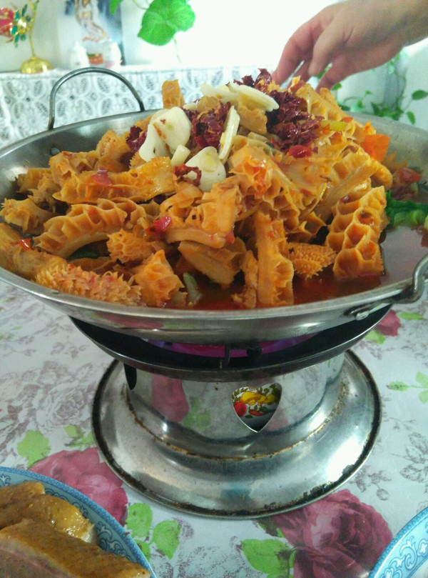 将麻椒放入热油炸香,挑出麻椒不用,将热油淋入酒精锅内