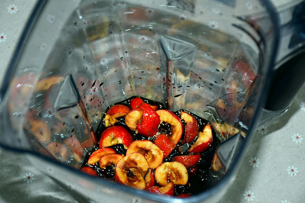 4.将山楂放到破壁机桶中,倒入煮好的红糖