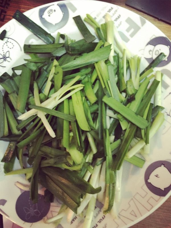 炒差不多了把韭菜倒进去,翻炒,韭菜炒倒下就可以了。如果觉得味道不够,加点盐,和味精,好了,出锅!装盘!上桌!一气呵成!