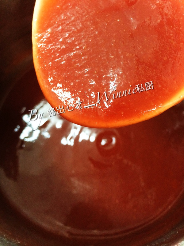 最后熬煮成这样就好了。也可以再熬煮的稠些,随喜。待全凉后再装瓶并放入冰箱内保存。