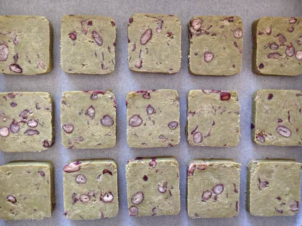 搅拌均匀后,将面团倒在保鲜膜上,整出方形,随后放冰箱冷冻一小时左右。