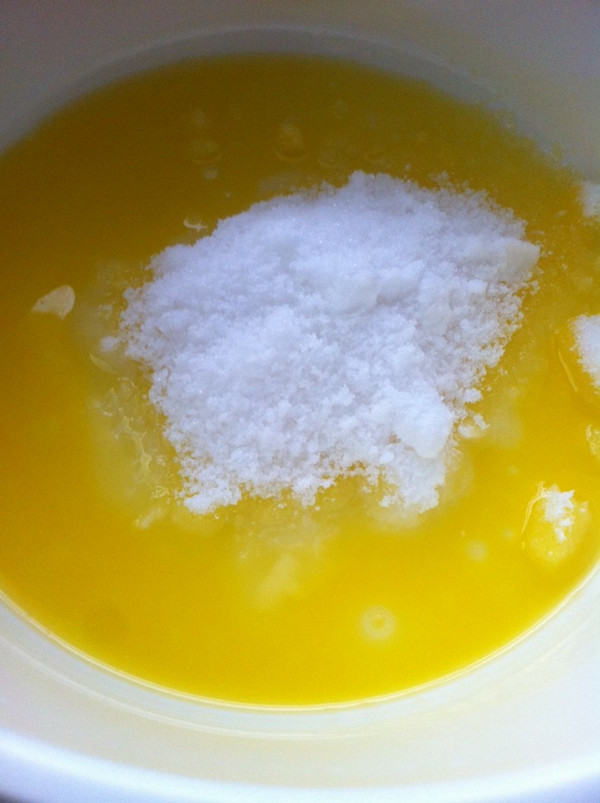 黄油融化成液体(微波炉加热)加入糖搅拌均匀
