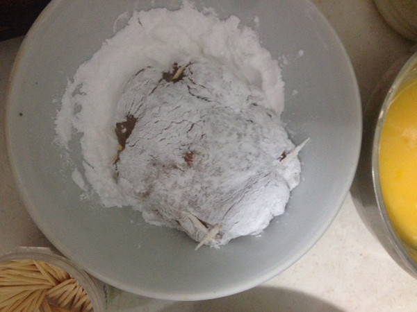 鸡胸肉片薄一点,容易煎炸,口感也好。我一块鸡胸肉做了两块鸡排。