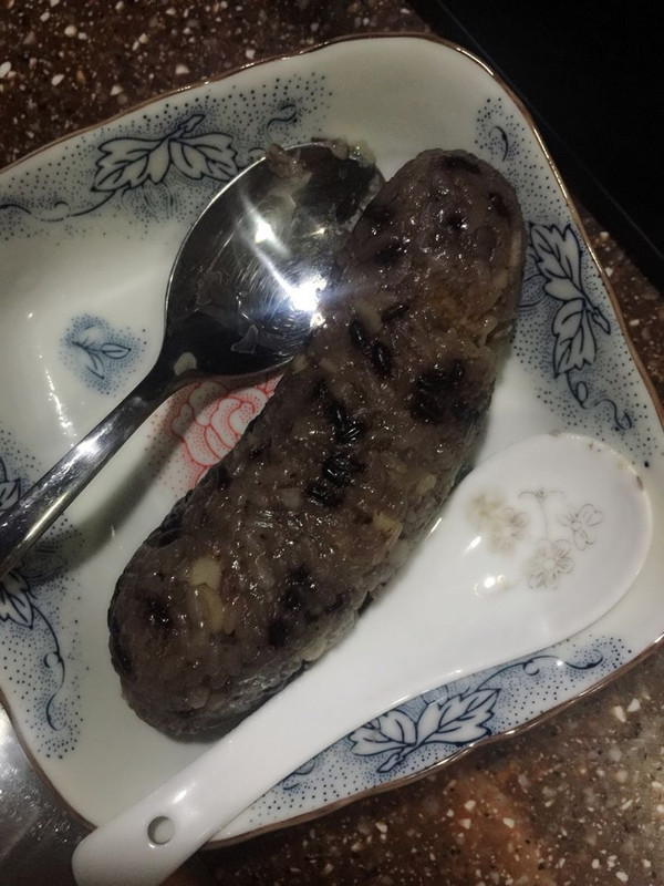 蒸好的米肠就是这个样子啦,因为放了一点黑米,所以颜色会发黑。又因为放了猪肉,所以有股肉香。完美!大家按照我的步骤来做吧,祝你成功哈哈!