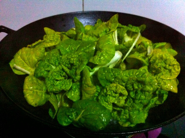 葱香出来后放入锅中,大火旺炒。盖盖两分钟,放盐少许,糖少许出锅。