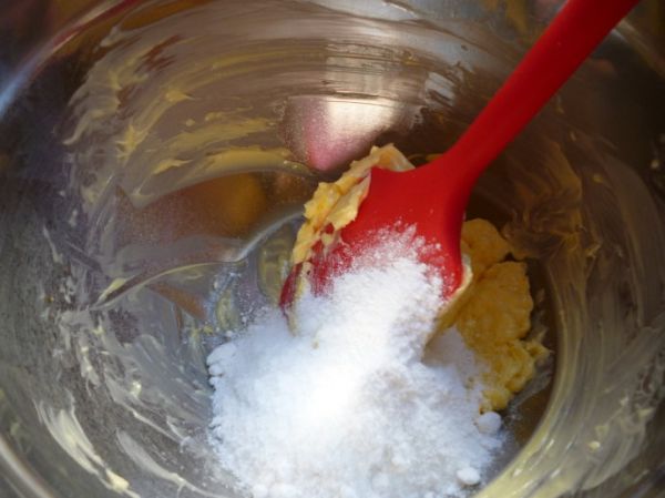 称量所有材料,花嘴装入挤花袋,烤箱预热180度;无盐奶油软化后加入糖粉和香草精油刮拌均匀。