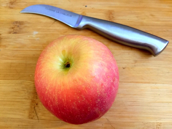红苹果一个洗净去蒂去把,水果刀一把