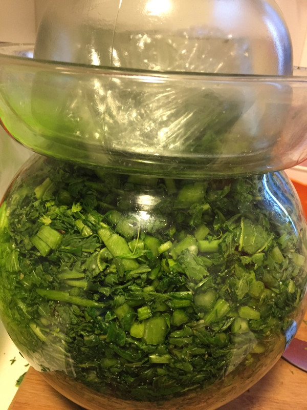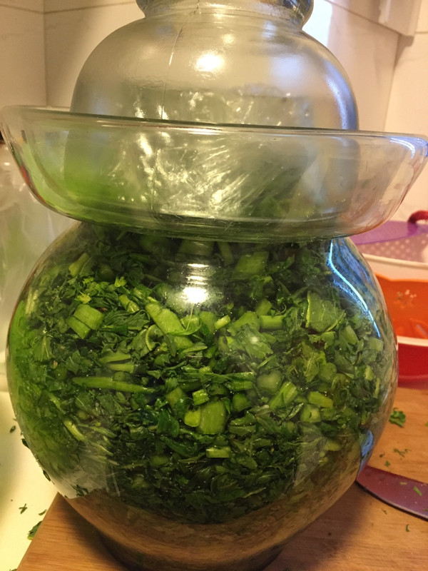 将辣菜摘干净,去除黄叶和比较老的叶子,洗干净,然后外室外晾干,我是晾了一天。建议不要晾太久,不然太干,做出来就不脆了!