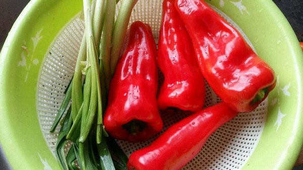 红椒、大蒜洗好备用