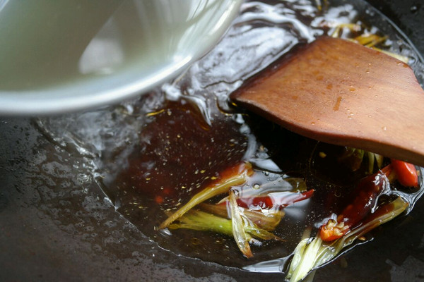 再倒入刚才混合的调味酱翻炒几下,加入过滤好的洋葱汤汁
