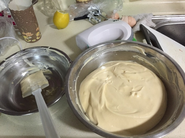 蛋白分三次倒入蛋黄搅拌