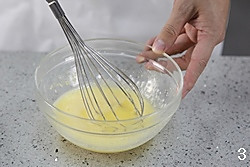 在另一个碗里,将鸡蛋打散,加入牛奶、糖、盐搅拌均匀成为蛋奶液。