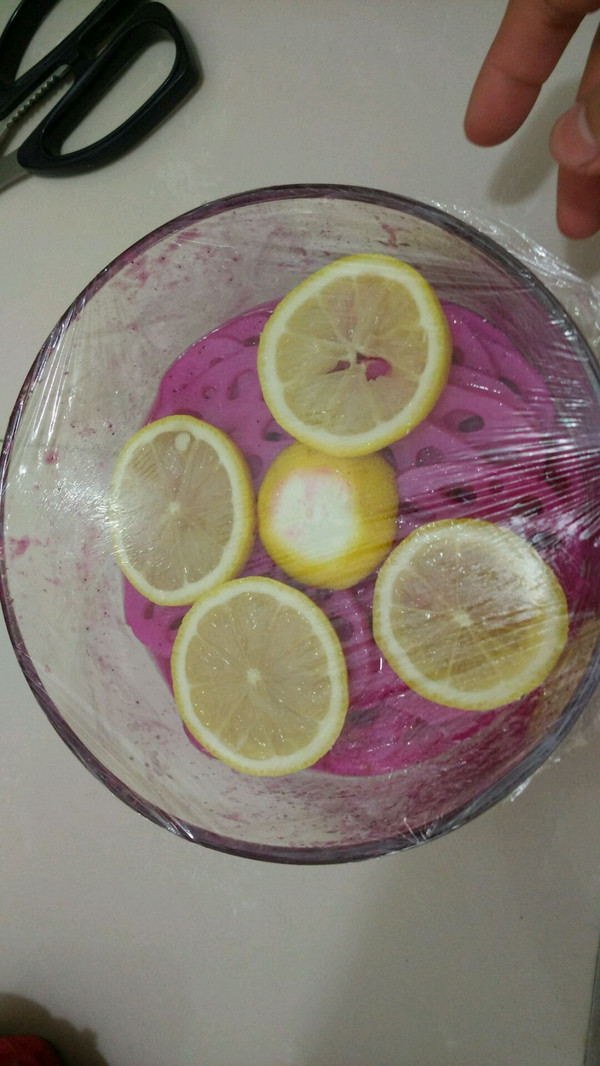 火龙果汁过滤浇在莲藕上