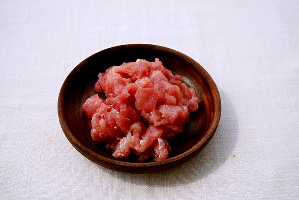里脊肉切薄片,其实用五花肉最好,奈何我家女儿丁点肥肉都不吃啊,没办法用里脊肉了