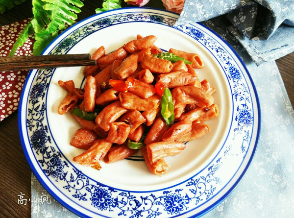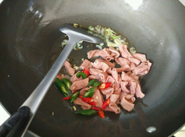 辣椒切段,葱姜切丝。辣椒我用了两个朝天椒,两个绿色的小辣椒。