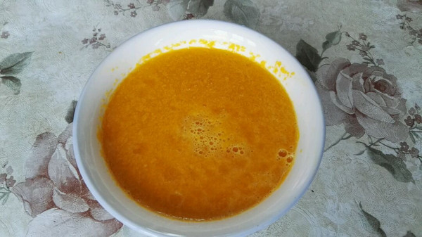 南瓜洗净去皮,切小块放入榨汁机加少量水打成汁,用于和面。