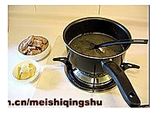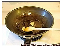 取来炒锅,倒入适量的油,如果你的炒锅不是不粘锅,那丢两三片姜下去,用锅铲压着姜片在锅内擦一擦,这样一会倒入排骨煸炒得时候就不会粘锅了