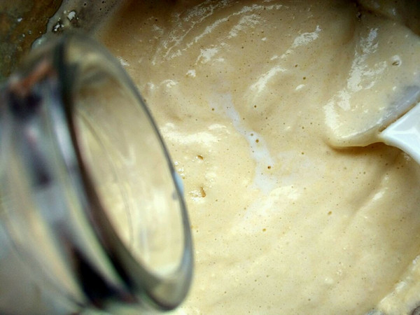 用翻拌的手法把蛋糊拌均匀。(海绵蛋糕容易消泡,新手注意手法,像炒菜那样翻拌,可以网上看一下视频。)