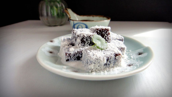 冰粉凝固后,把椰蓉和少量奶粉过筛混合,沾在切块的冰粉表面,就跟牛奶小方似的,这就是一道春夏适宜的小甜品啦!瞅着有点像龟苓膏哈,但这是灵芝孢子粉呀~~~~这个保健功效,啧啧啧。