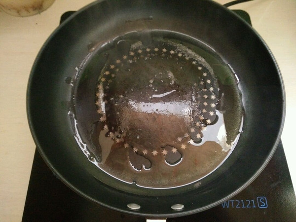 地瓜粉中加一点点的水,大约30克,再加入四颗鸡蛋。(可加入少许的盐)