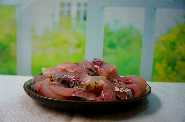 鱼片顺着纹理切成均匀薄厚的片儿,然后装入一个大碗当中,记住哦一定要用清水彻底清洗干净血水