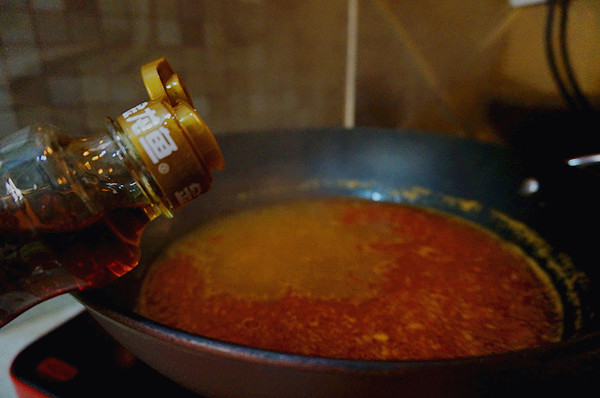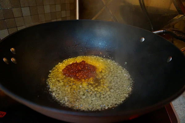 热锅注油,放入姜末,蒜末,豆瓣酱,小火炒香