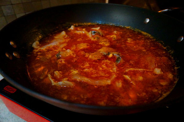 再将腌制好的鱼骨倒入锅中,盖上盖子,煮约两到三分钟至入味