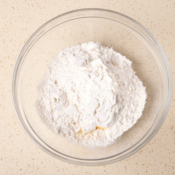 用手揉搓直到搓匀,混合好的面粉像粗玉米粉的样子。