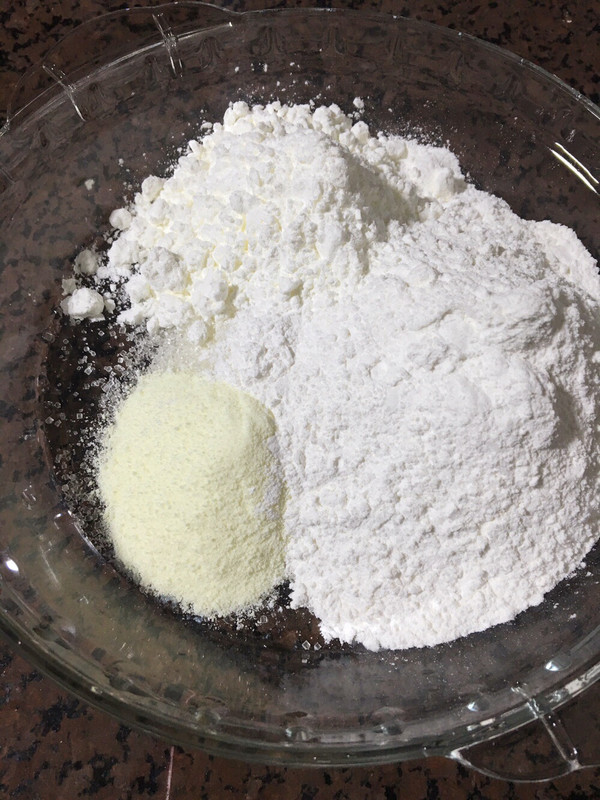 利用面包机揉面的时间来制作麻薯,所有麻薯材料称好。