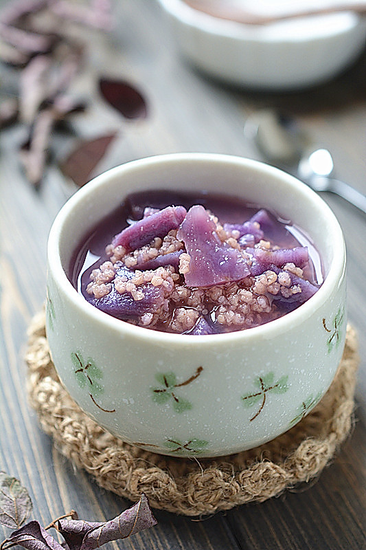紫薯小米粥#美的微波炉菜谱#(
