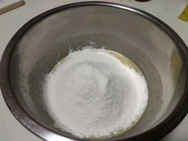 将软化的黄油和蛋液、糖粉一起放入小盆中
