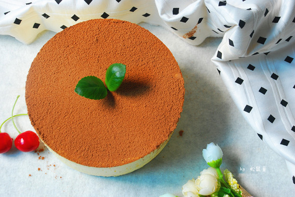 用筛网均匀筛上可可粉,也可再加糖粉装饰。美丽的提拉米苏就做好喽!