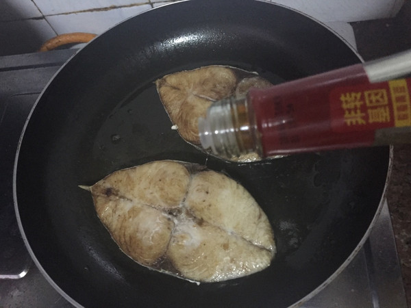平底锅倒入适量的油烧至六七成热时放入马胶鱼,小火慢煎至金黄色