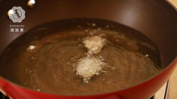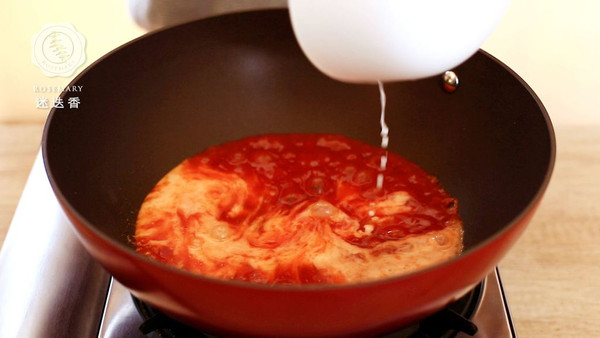 锅中倒少许油,接着倒入调好的番茄酱汁儿大火烧开