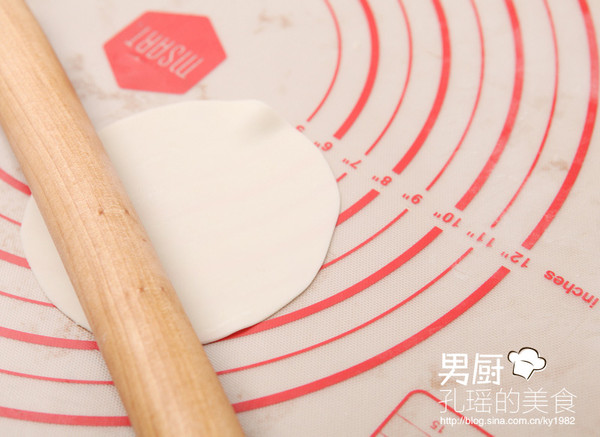烧麦皮可用自己做的,也可用市场买来的饺子皮,买来的饺子皮需用擀面杖再擀大一些就好。