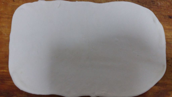 将面团 擀成长方形,并涂上驴油。