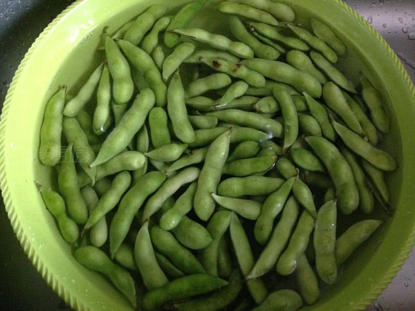 买回来的毛豆清洗干净后,水里放些盐,浸泡10分钟左右;
