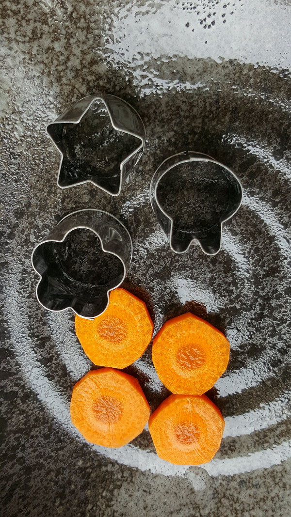 为了美观些我用磨具把胡萝卜做了几个花朵形状