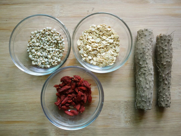 将山药、薏仁、燕麦和清水放入锅中,大火煮开后转小火煮30分钟,放入枸杞再煮10分钟即可。