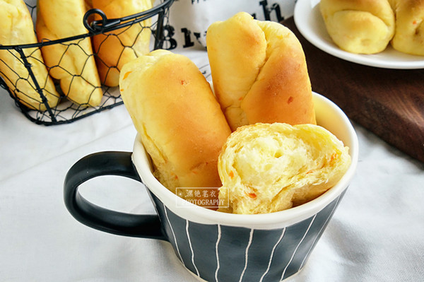 胡萝卜切薄片放在蒸架上蒸熟,用勺子压成胡萝卜泥,(我用料理机)放凉备用。除黄油外所有材料混合拌至能拉出厚膜的阶段。加入黄油,拌至能拉出透明薄膜的完全阶段。