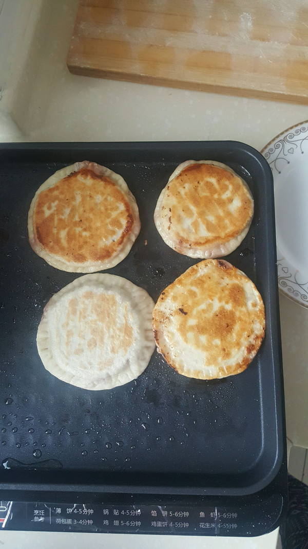 这样子摆好。包完底下沾一点面粉,防止粘上。