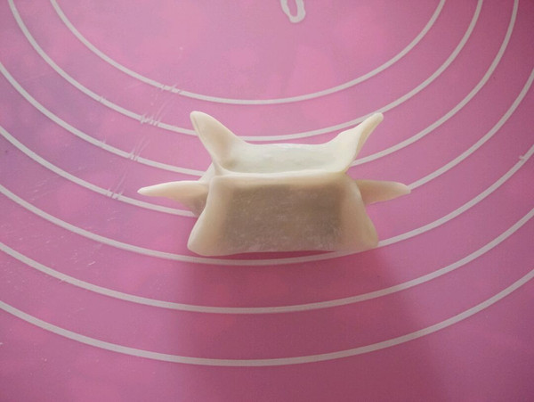 开始包饺子,买的饺子皮比较干,先在饺子皮外圈用手指蘸一圈清水,增加饺子皮的粘性。