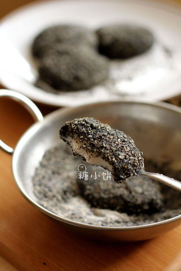 蘸料混合均匀,将团子挤入蘸料碗里面滚一圈即可,趁热食用