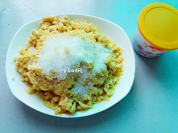 将脱皮碗豆洗净,浸泡半个小时后,倒掉水,放入沸水锅里大火蒸半个小时。