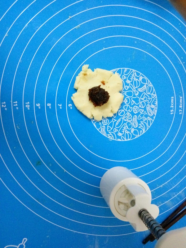 将熬好的绿豆泥放凉后均分成30克的小快(如果此时觉得有点软,可以放冰箱里冷藏一下再做),搓成圆球压扁,边上稍微薄一点,中间包入事先准备好的枣泥,将口收起,搓圆,收口朝下,用模具按压成行(模具内壁稍用点香油抹一下,好脱),漂亮又好吃的枣泥绿豆糕就做好了,简直是好吃得不要不要的。
