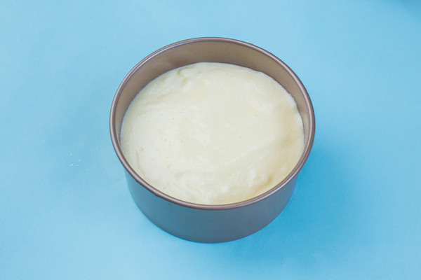 将蛋糕糊倒入模具,轻震两下,如果表面浮现气泡,可以用牙签在蛋糕糊表面画很多“Z”字,去除气泡。