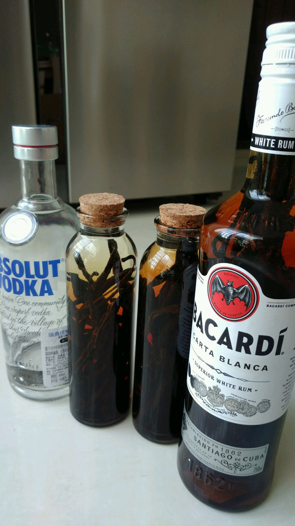 我用了两种酒,伏特加和朗姆酒,分别看看泡出来的味道有何区别,伏特加的盖子设计只能倒酒不能往里放东西,所以我就用开水煮了两个玻璃瓶,放干后将伏特加倒进去