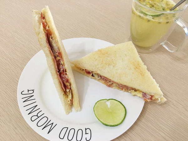 中式三明治+百香果苏打水 简单的早餐!